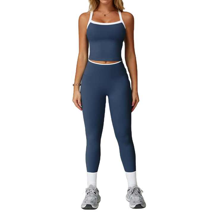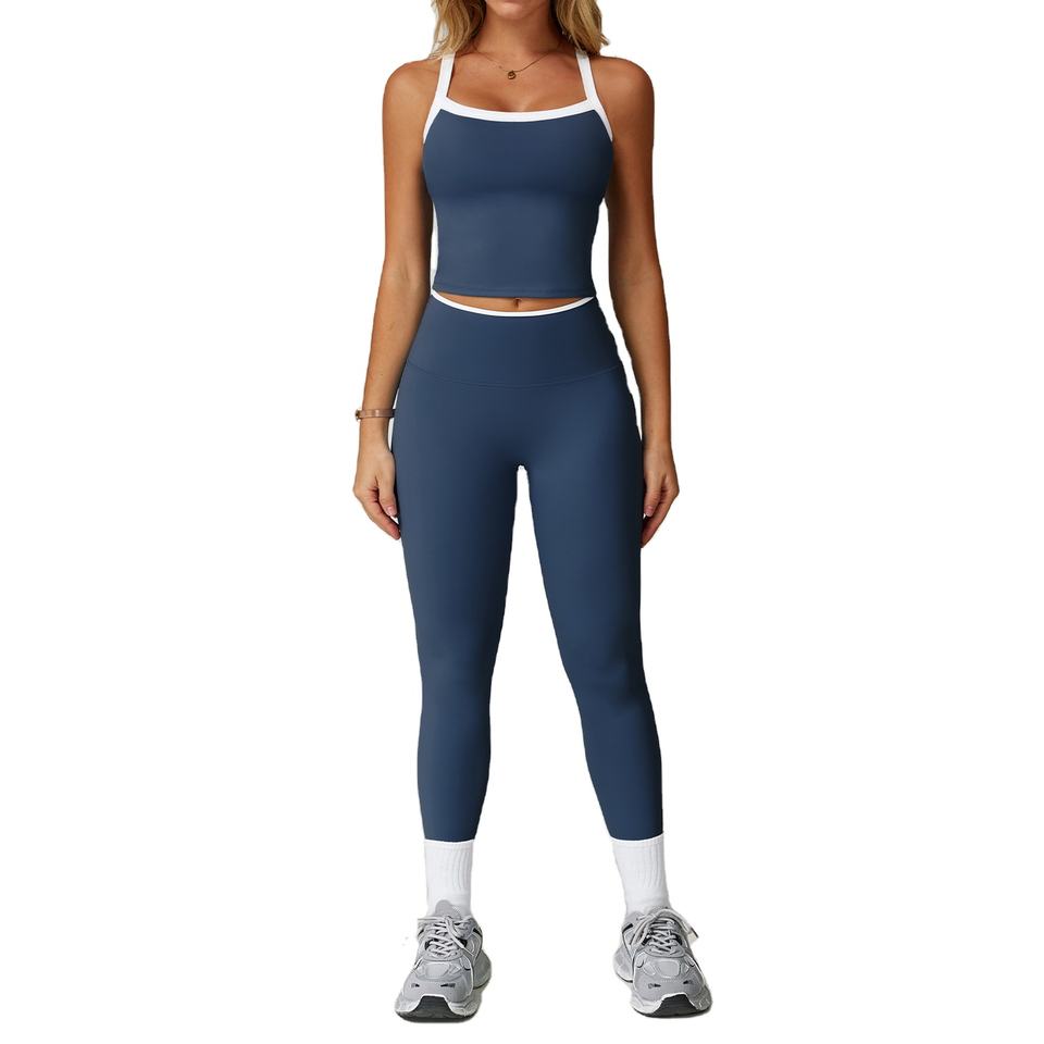 Summer Naked-Feel Yoga Set Contrasting Colors Cross-Back Design Short Tight-Fitting Breathable Quick Dry Yoga Clothes Women