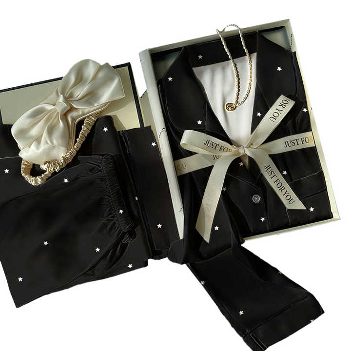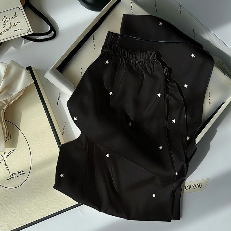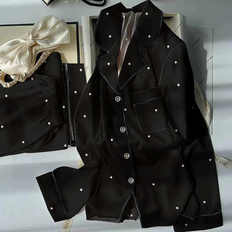 Summer New Arrival: Black Printed Premium Women's Long-sleeve Top and Pants Homewear Pajamas