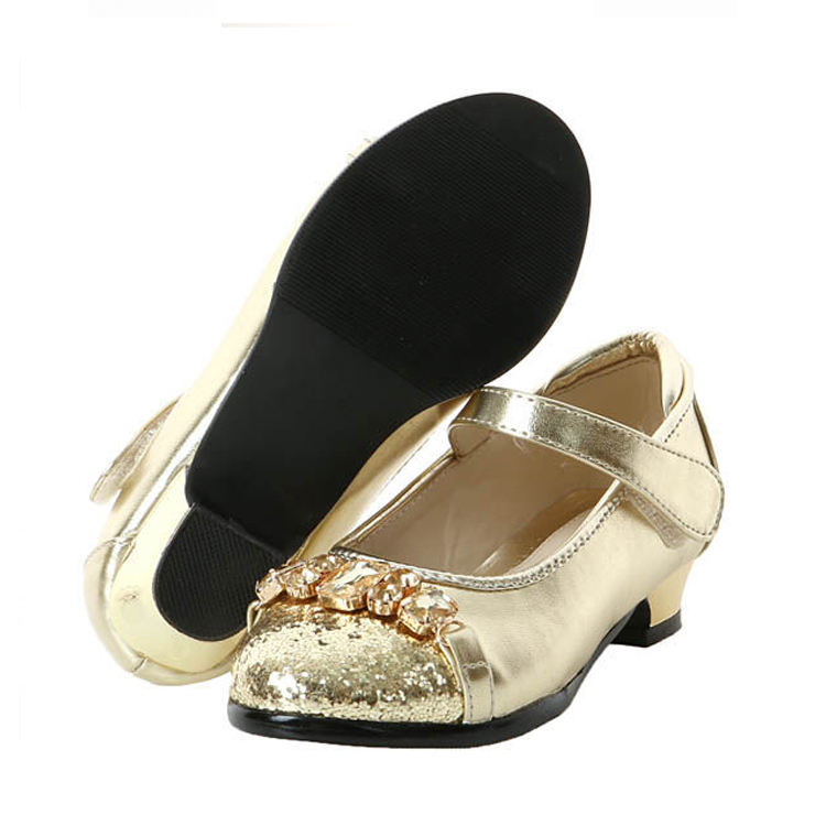 Sandali con tacco alto per bambini di nuovo design estivo scarpe eleganti da festa per ragazza in pelle dorata