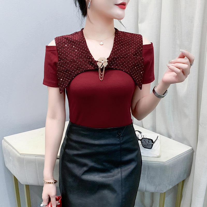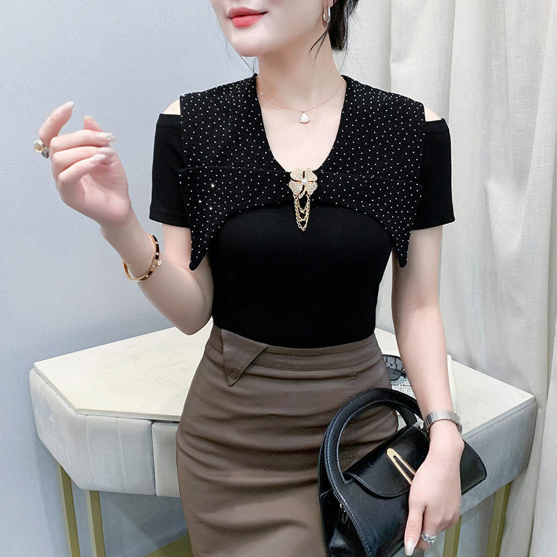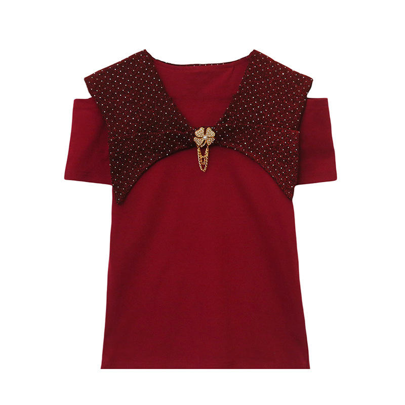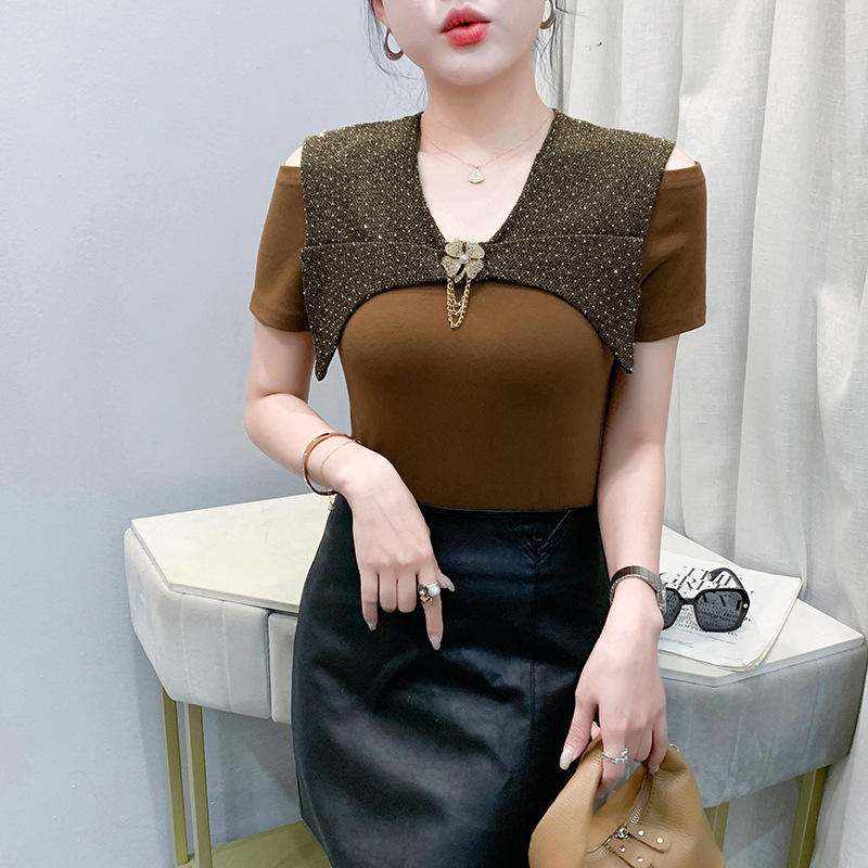 Estate nuova industria pesante francese tridimensionale Clinch t-shirt manica corta a balze Top abbigliamento donna