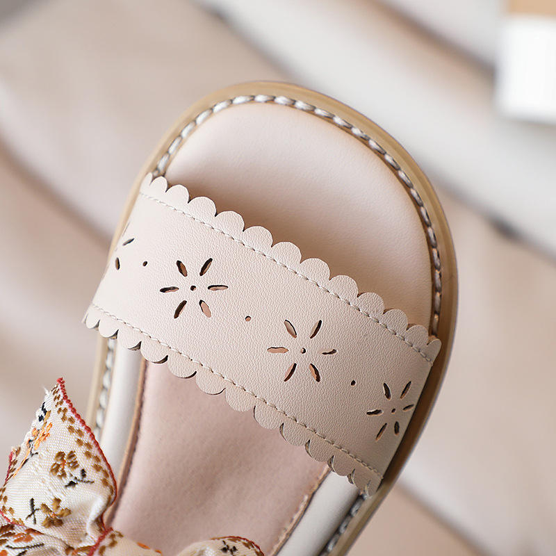 Summer New Kids Princess Sandals Breathable Soft Fashion Slides for Baby Girls Cute Flower Dress Shoes Sweet Beige Color for
