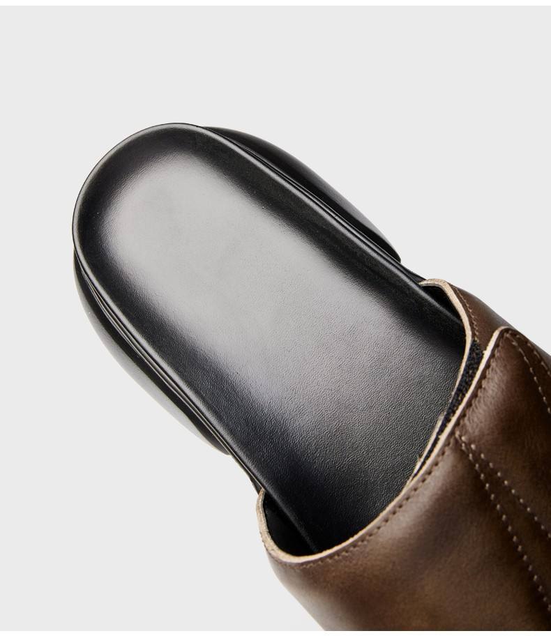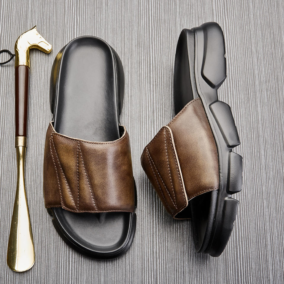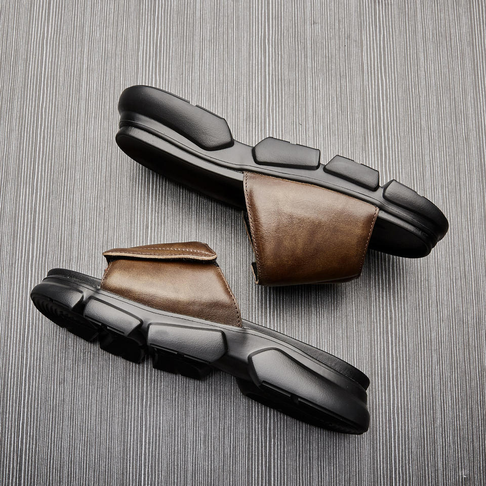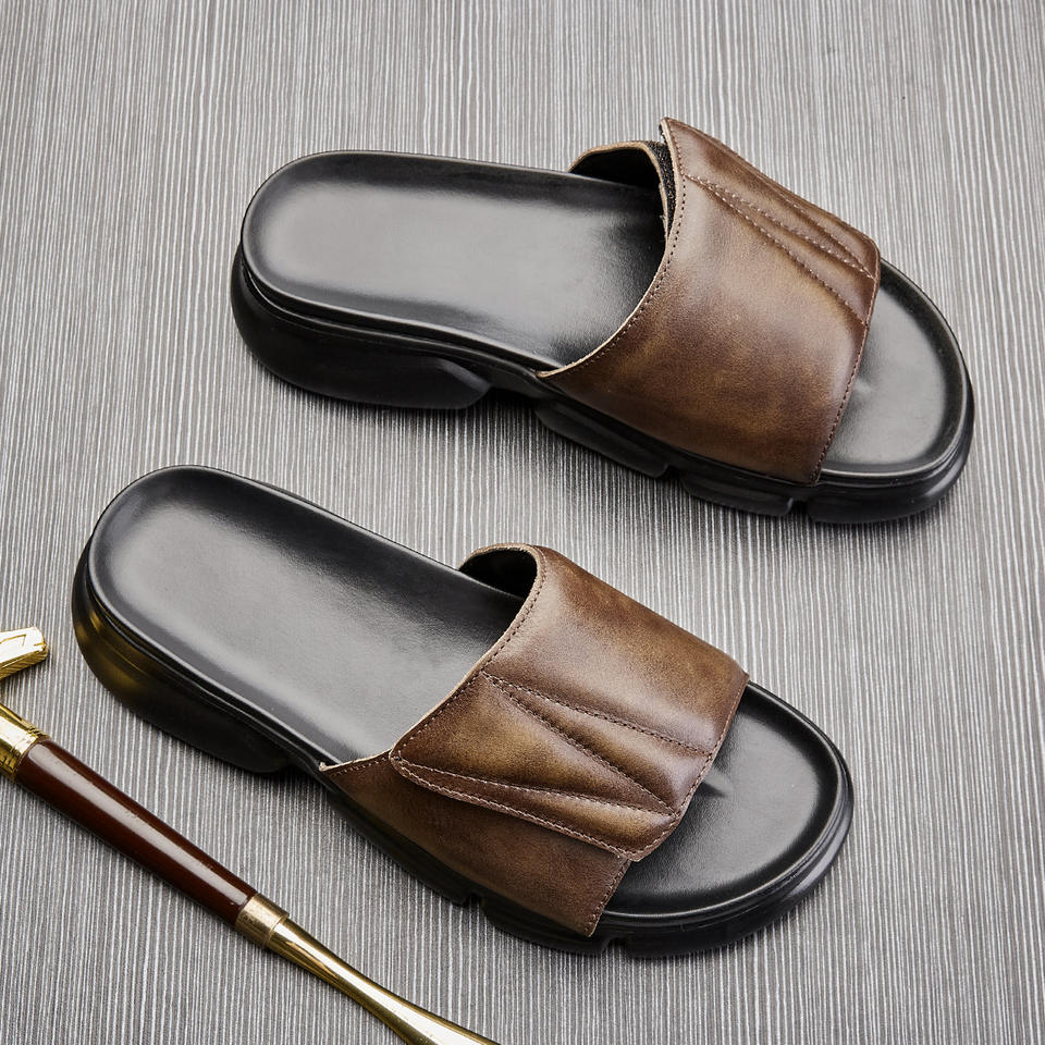 Summer New Men's Genuine Leather Flip Flops Velcro Non-slip Beach Shoes Men