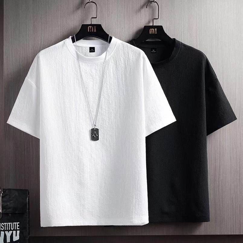 Summer New Men's Vintage Half Sleeve O-Neck Raglan Sleeve Blank Design Loose Fit White T-shirt