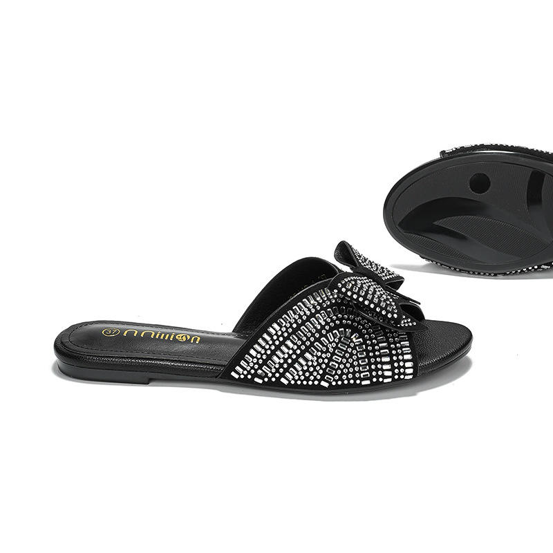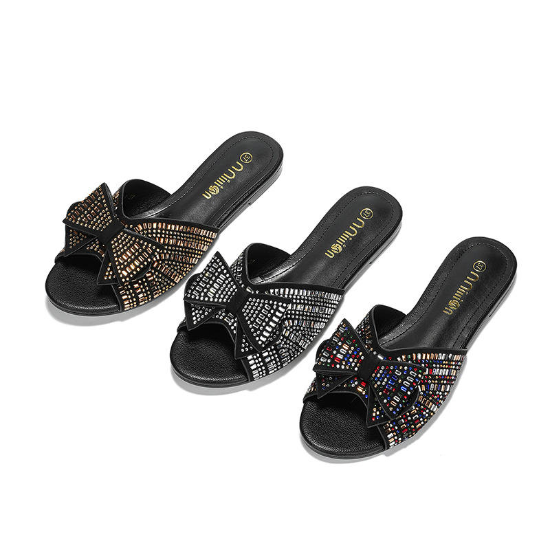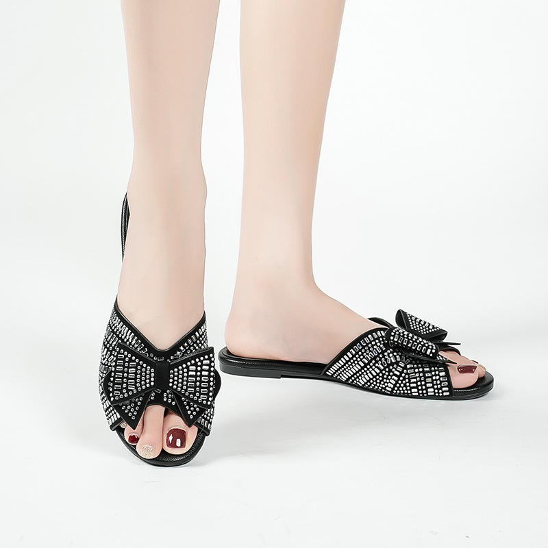 Nuovo stile estivo sandali da donna piatti interi con nodi a farfalla glitterati-tendenza alla moda per Ootdoors