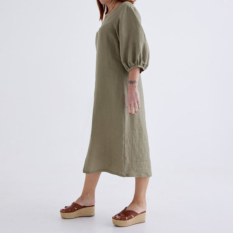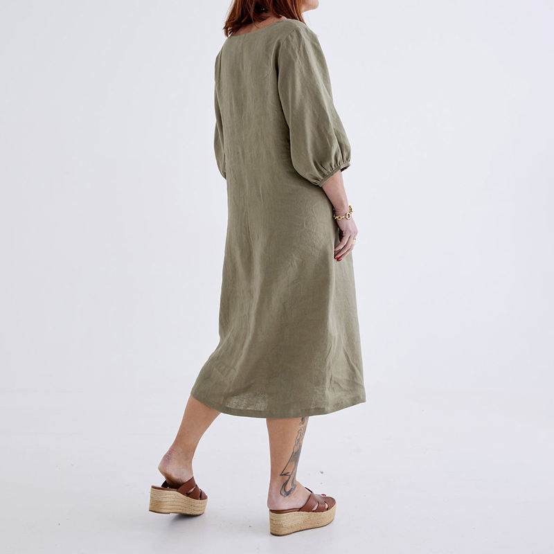 Nuovo Stile Estivo: Abito da Donna in Lino e Cotone Ecologico, Lunghezza Midi, Scollo a V, per Uso Quotidiano