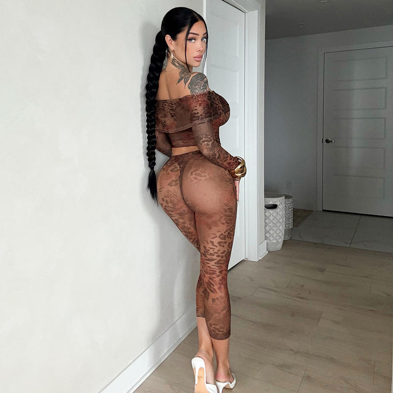 Completi estivi 2 pezzi Sexy con stampa leopardata a maglia con spalle scoperte Crop Top pantaloni corti da donna