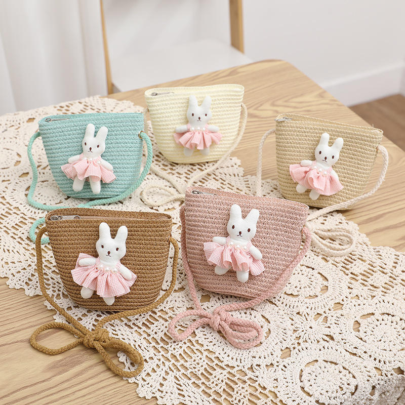 Set Estivo Casual Genitore-Figlio: Cappello da Sole in Paglia di Rafia Traspirante e Borsa per Neonati e Bambini, Protezione Solare Unisex