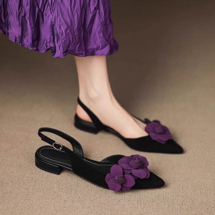 Estate con cintura piatta vuota e comoda scarpe da donna alla moda L9998 nuovi sandali con tacco basso a punta di fiori
