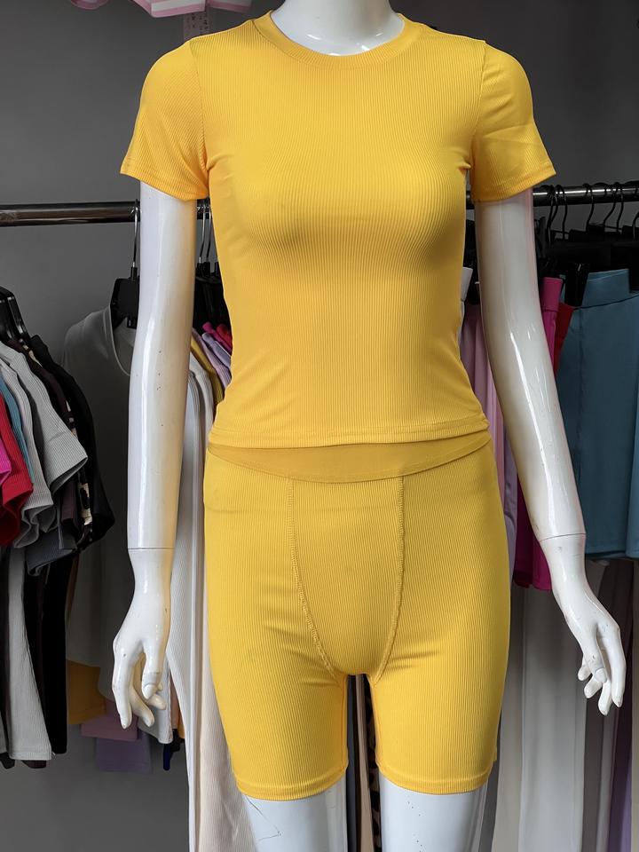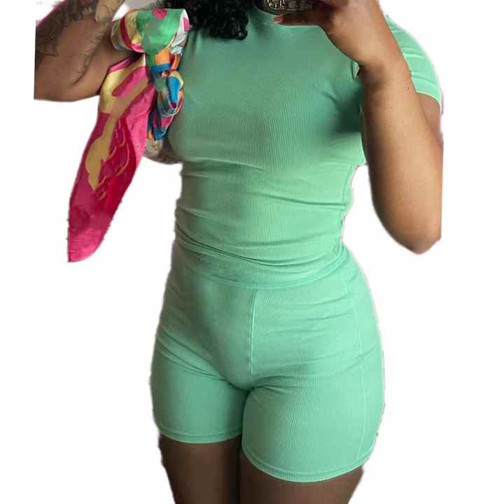 Maglietta estiva a coste in maglia verde menta a maniche corte e Shorts 2 due pezzi da salotto Dupe Set completo abbigliamento da donna