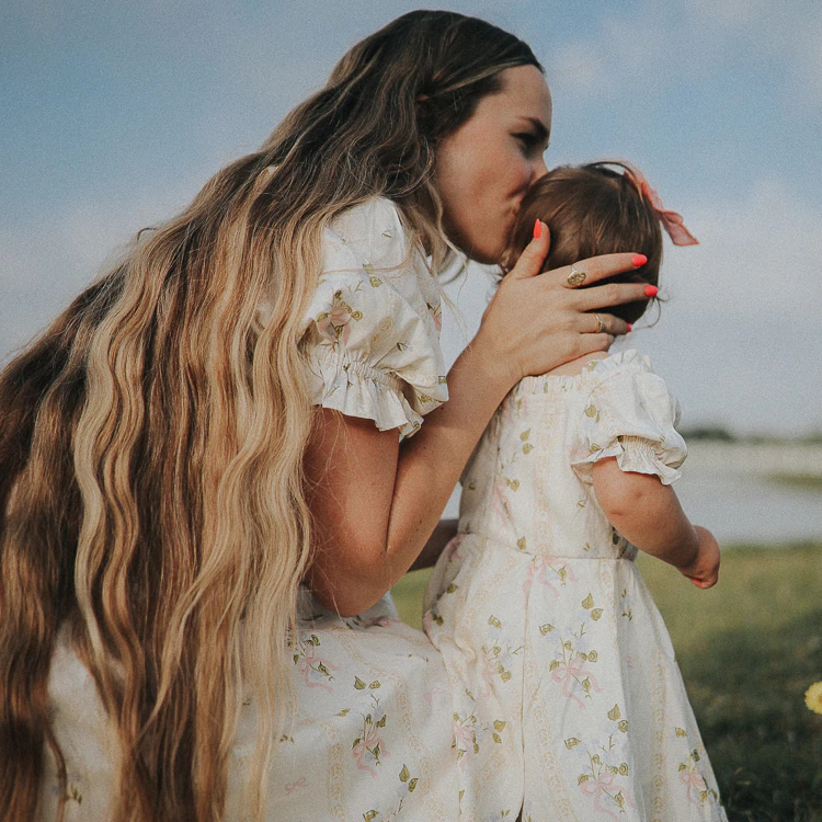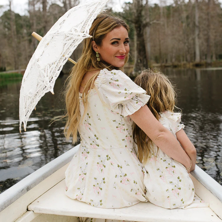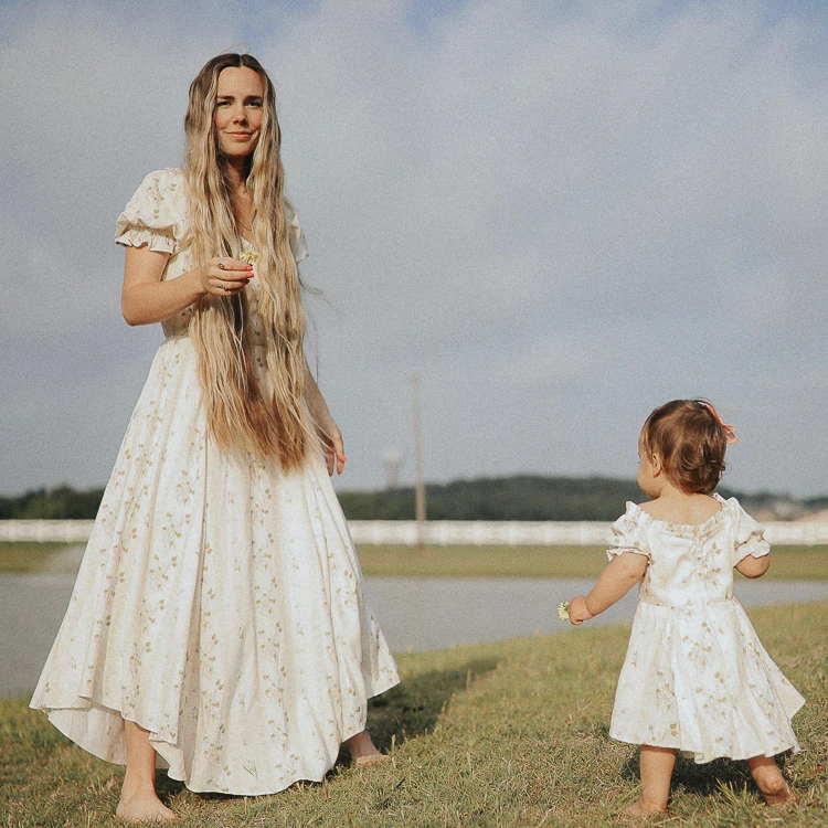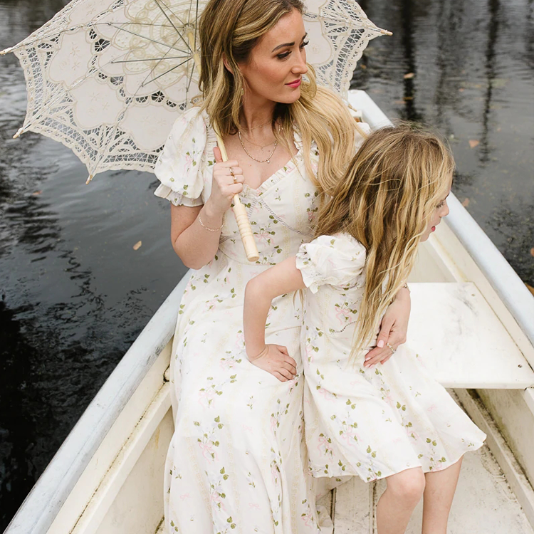Estate manica a sbuffo increspatura fiore mamma e io abiti abiti abbinati alla famiglia mamma e io abiti coordinati