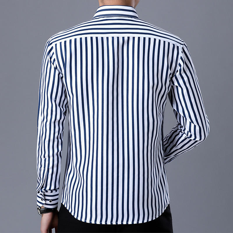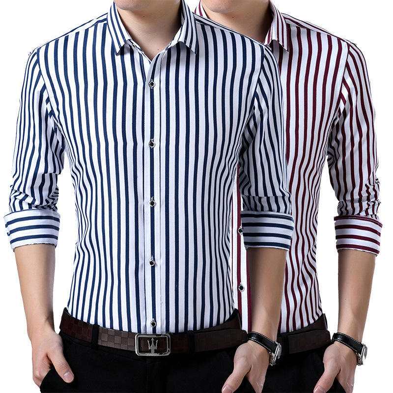 Camicia estiva da uomo a manica lunga stampata a righe verticali di colore rosso blu di utilità di moda Casual per uomo d'affari