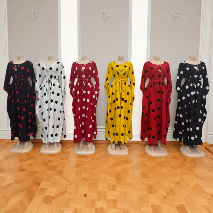 Estate retrò vita alta Midi da donna all'ingrosso manica lunga girocollo a linea a pois abito