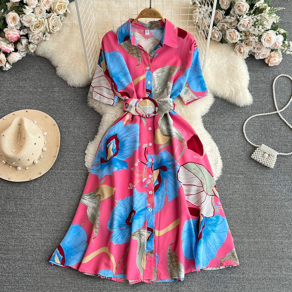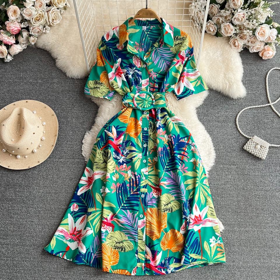Camicia estiva con risvolto a maniche corte monopetto stampata abiti Casual