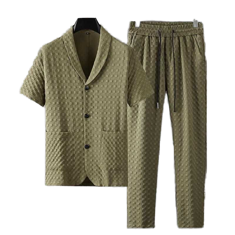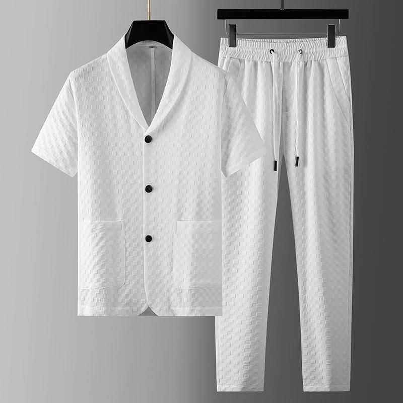 Abiti estivi a maniche corte Casual e traspirante alla moda camicie con bottoni con bottoni a scacchi da corsa Comfort Set da uomo in due pezzi
