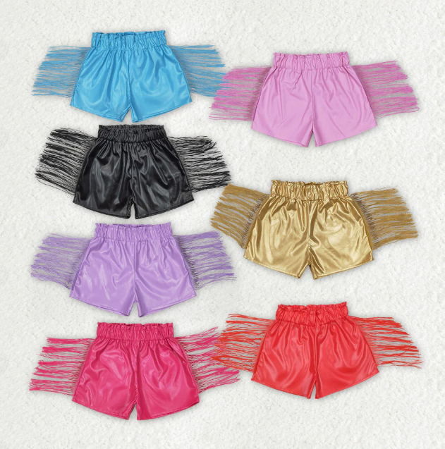 Pantaloncini Estivi in Pelle Multicolore con Elastico in Vita e Nappine per Bambina