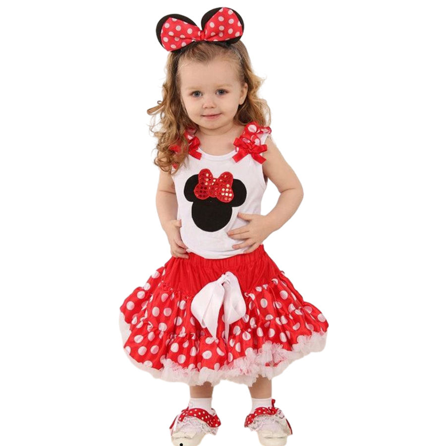 Summer Sleeveless Cotton Baby Girls Clothing Set Minnie Polka Dots Ruffle Outfits Kids Boutique Outfit