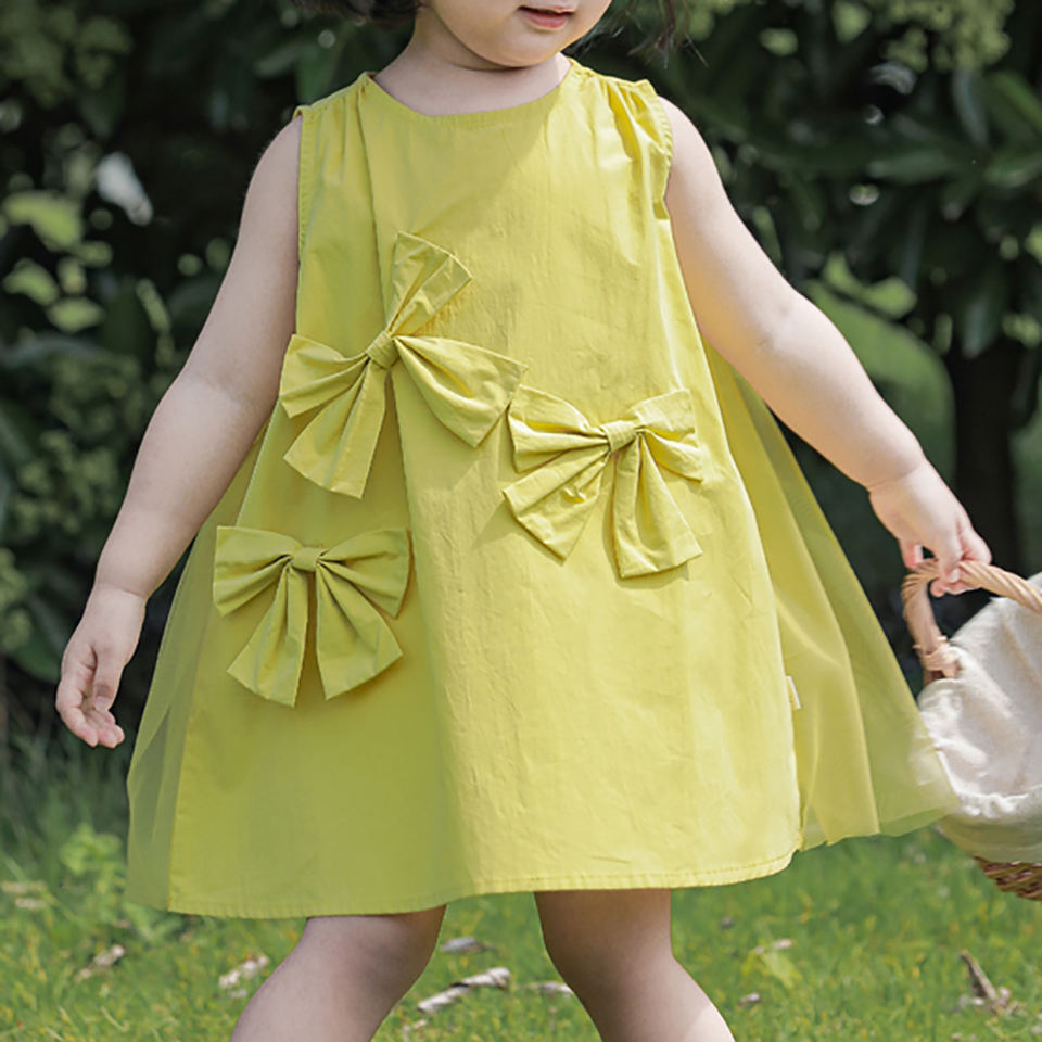 Abito Estivo Senza Maniche per Bambine, Stile Principessa, in Taffetà, Personalizzabile con Pizzo e Fiocco a Farfalla