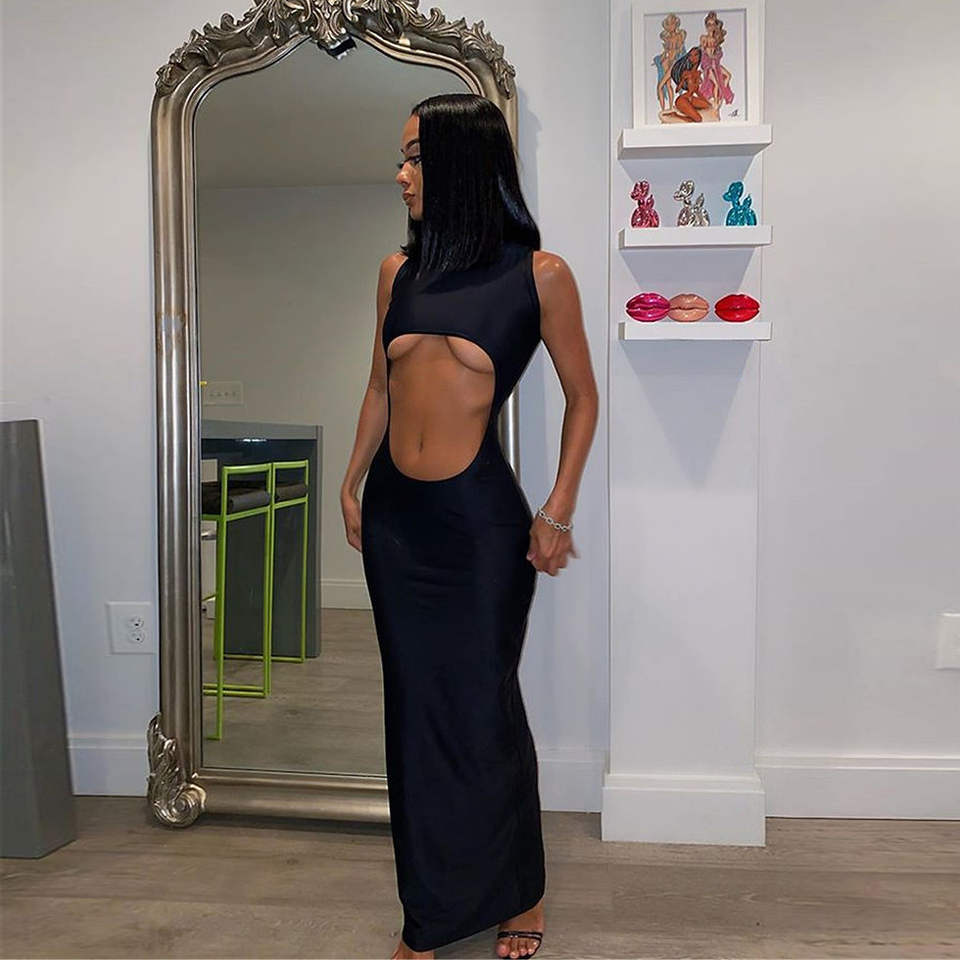 Abito lungo estivo senza maniche con pizzo, elegante e femminile