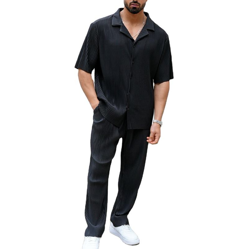 Summer Solid Color Sports Men's Suit Custom Embroidered Tracksuit Jogger Wear Casual Short Sleeve Cargo Trousers Two Piece Set