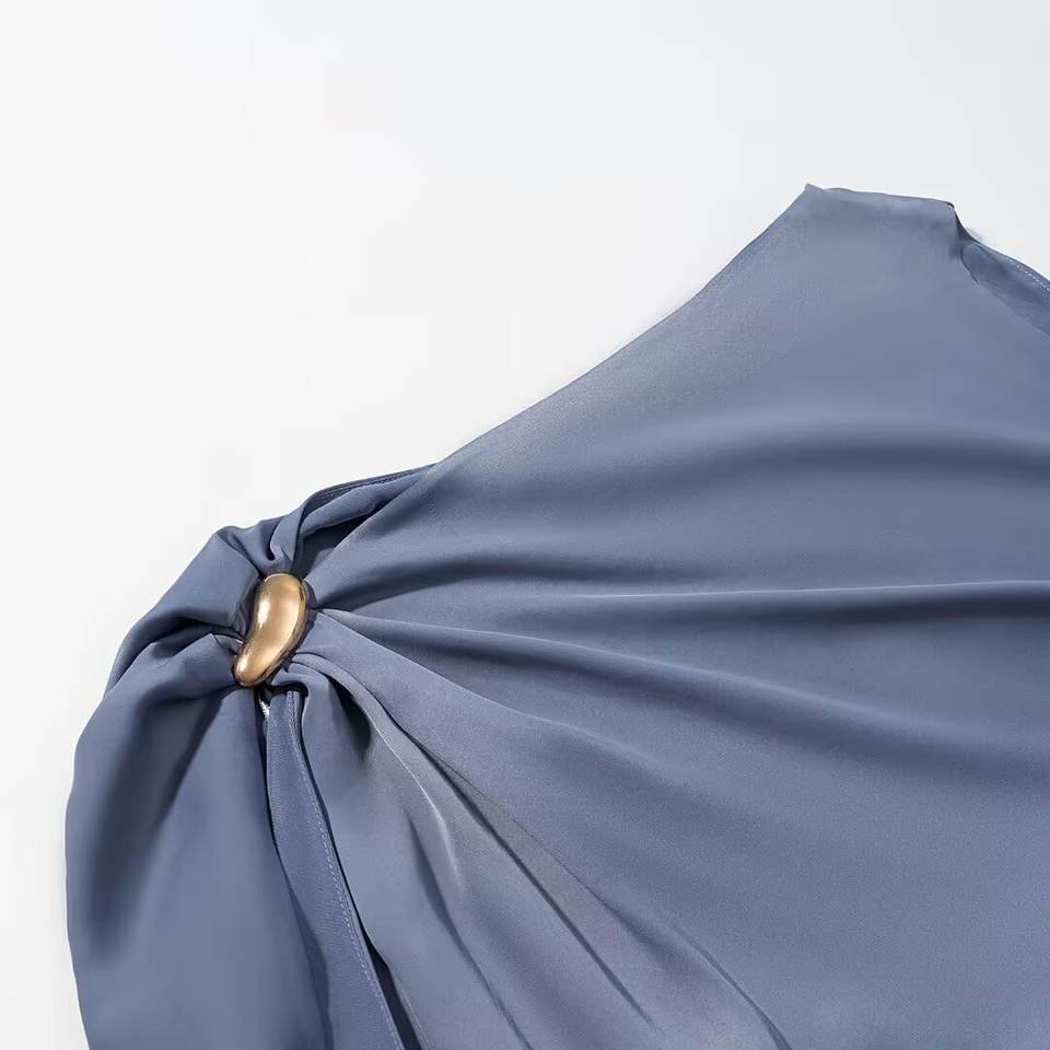 Top Asimmetrico Estivo da Donna in Stile Occidentale, Elegante e Versatile, in Seta e Raso, Camicette e Top Casual per Signore