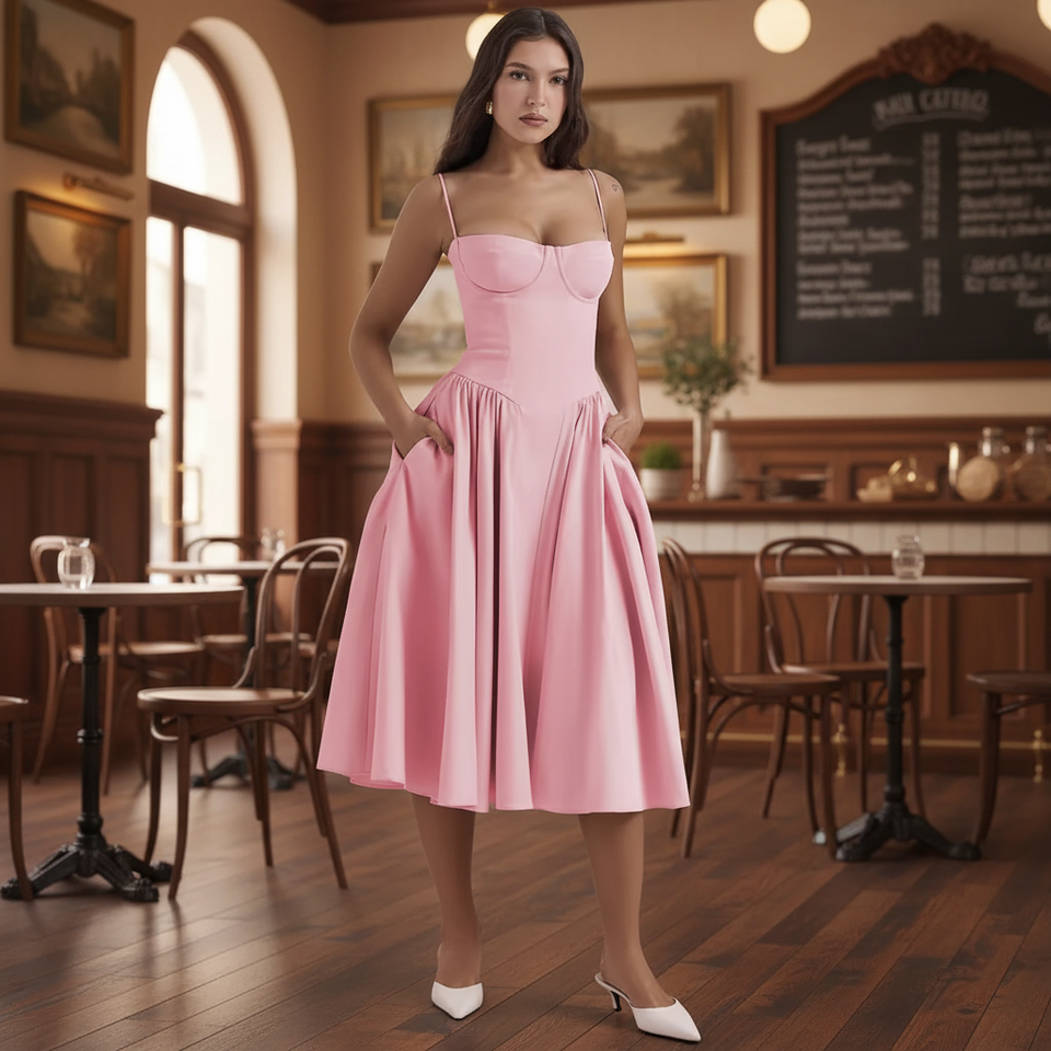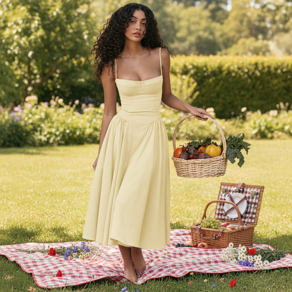 Abito Lungo Estivo Senza Spalline con Vita Impero Stile Vintage Francese per Donna Taglie Forti Modesto da Festa in Viscosa