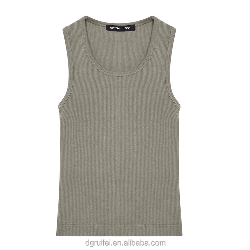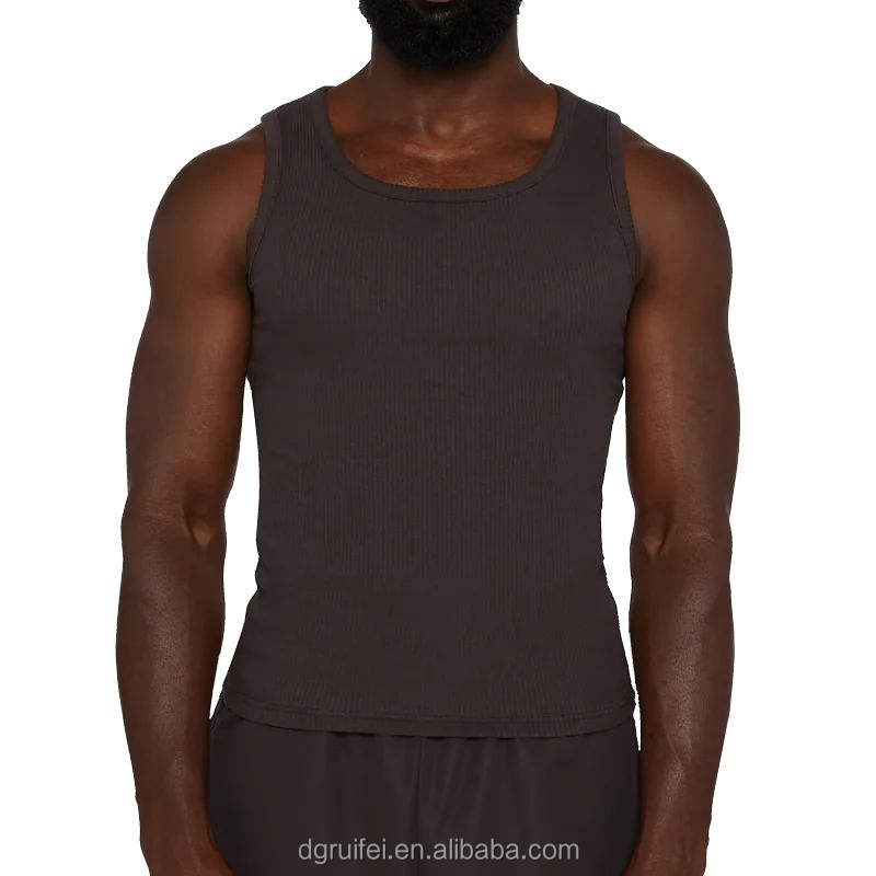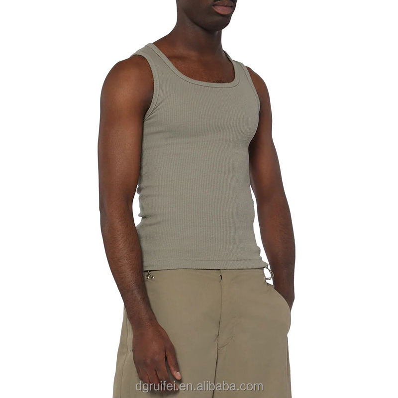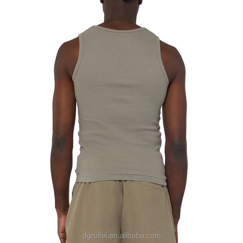 Summer Streetwear OEM Custom Printed High Quality Sustainable Crewneck Muscle Fit 100% Organic Cotton Ribbed tank Top for Men