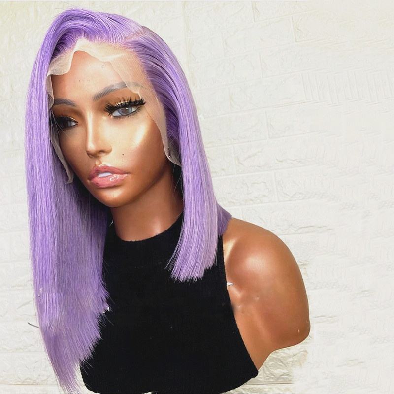 Parrucche Frontali in Pizzo Trasparente HD con Capelli Umani Vergini Malese Liscio Colore Lilla Stile Estivo