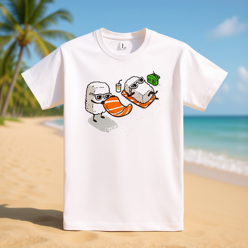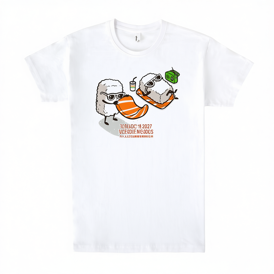 Summer Sushi T-Shirt White Cotton Unisex Casual Wear