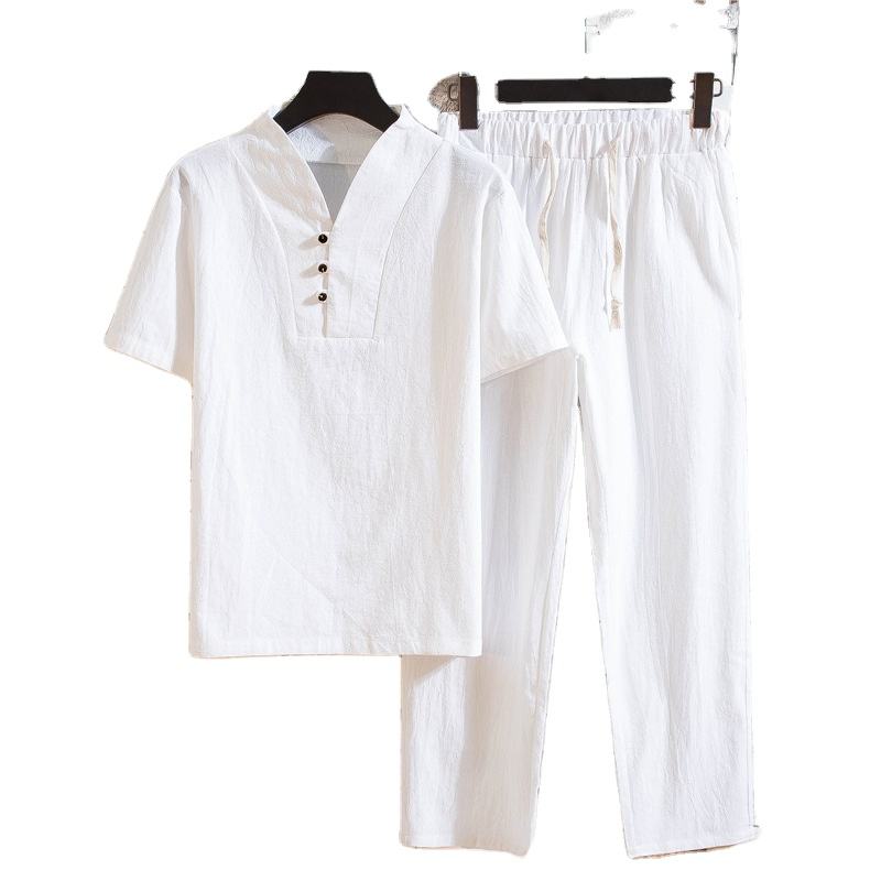 Summer Thin Section Linen Suit Men's Large Size Chinese Style Loose Retro Cotton and Linen Two Piece Set Sehe Fashion