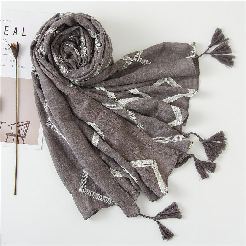 Summer Viscose Cotton Shawl Scarf Fashion Women's Soft Long Embroidered Pashmina Shawl With Fringe