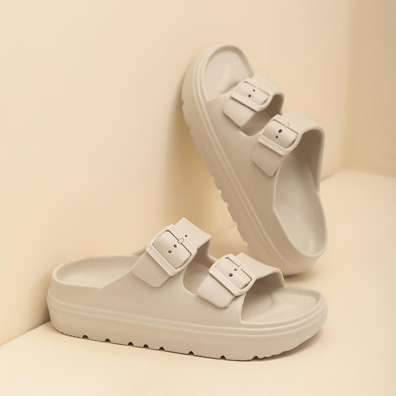 Summer Women Pillow Slippers Double Buckle Adjustable Slides EVA Flat Sandals Beach Sandals Women's Sandals Slippers for Women