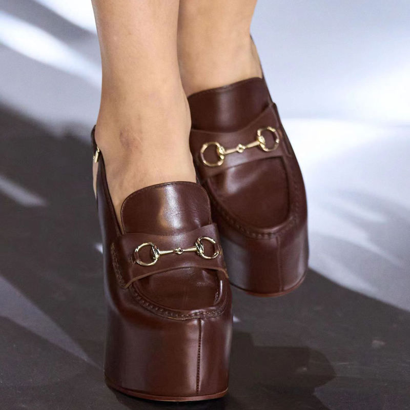 Summer Women Square Toe Sandals Back Buckle Strap Shoes High Platform Chunky Heels Outdoor Metal Chain Animal Prints Pumps