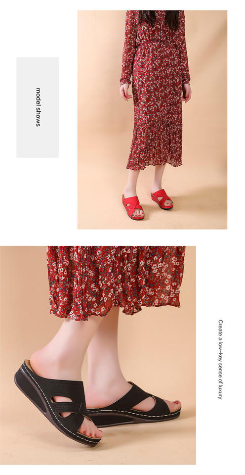 Summer Women Wedge Sandals Premium Orthopedic Open Toe Sandals Vintage Anti-slip PU Leather Casual Female Platform Retro Shoes