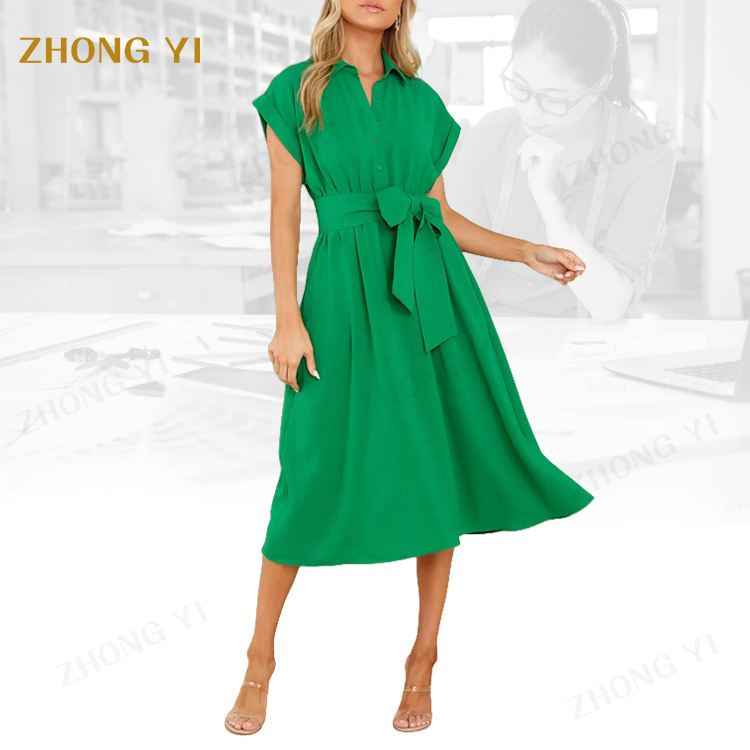 Estate donna manica corta tinta unita abito lungo tunica negozio splendido smeraldo manica corta abito Midi