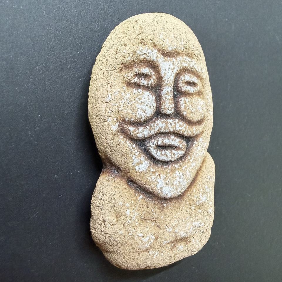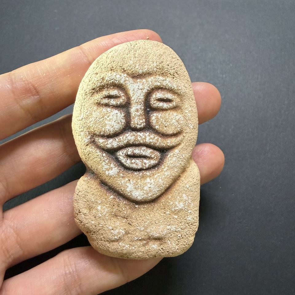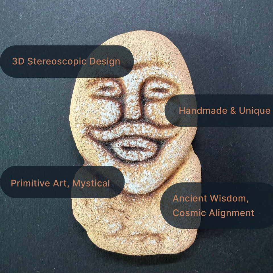 Magnete da Frigo Rotondo Artigianale in Argilla con Arte Rupestre, Talismano della Via della Seta Antica per Manifestazione ed Energia Positiva.