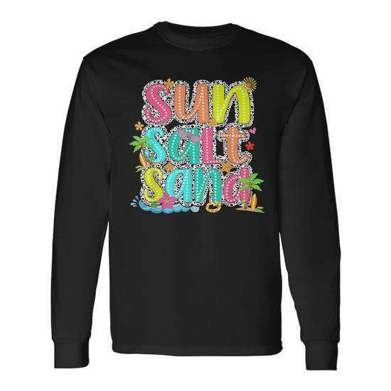 T-Shirt Unisex a Maniche Lunghe con Stampa Digitale 'Sun Salt Sand Hawaii Beach Summer Vibes', Collo Rotondo, per Adulti, Promozionale