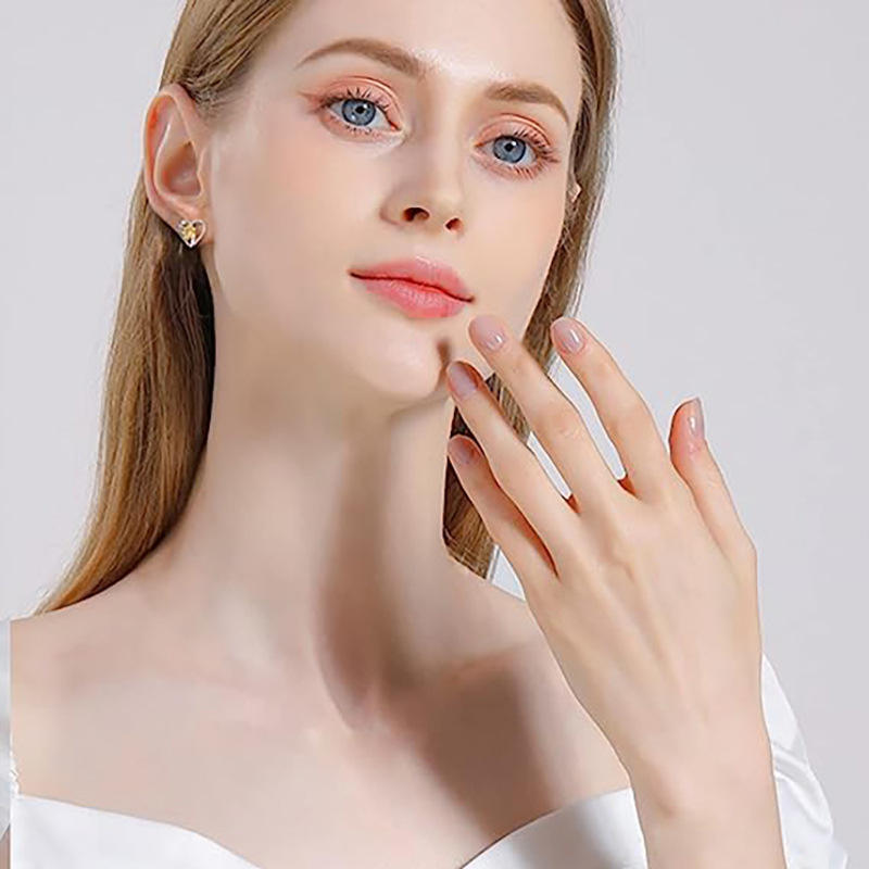 Sunflower Heart Stud Earrings Two-tone 18K Gold Plated Zircon Round Brilliant Cut Bezel Setting Women's Romantic Gift Jewelry