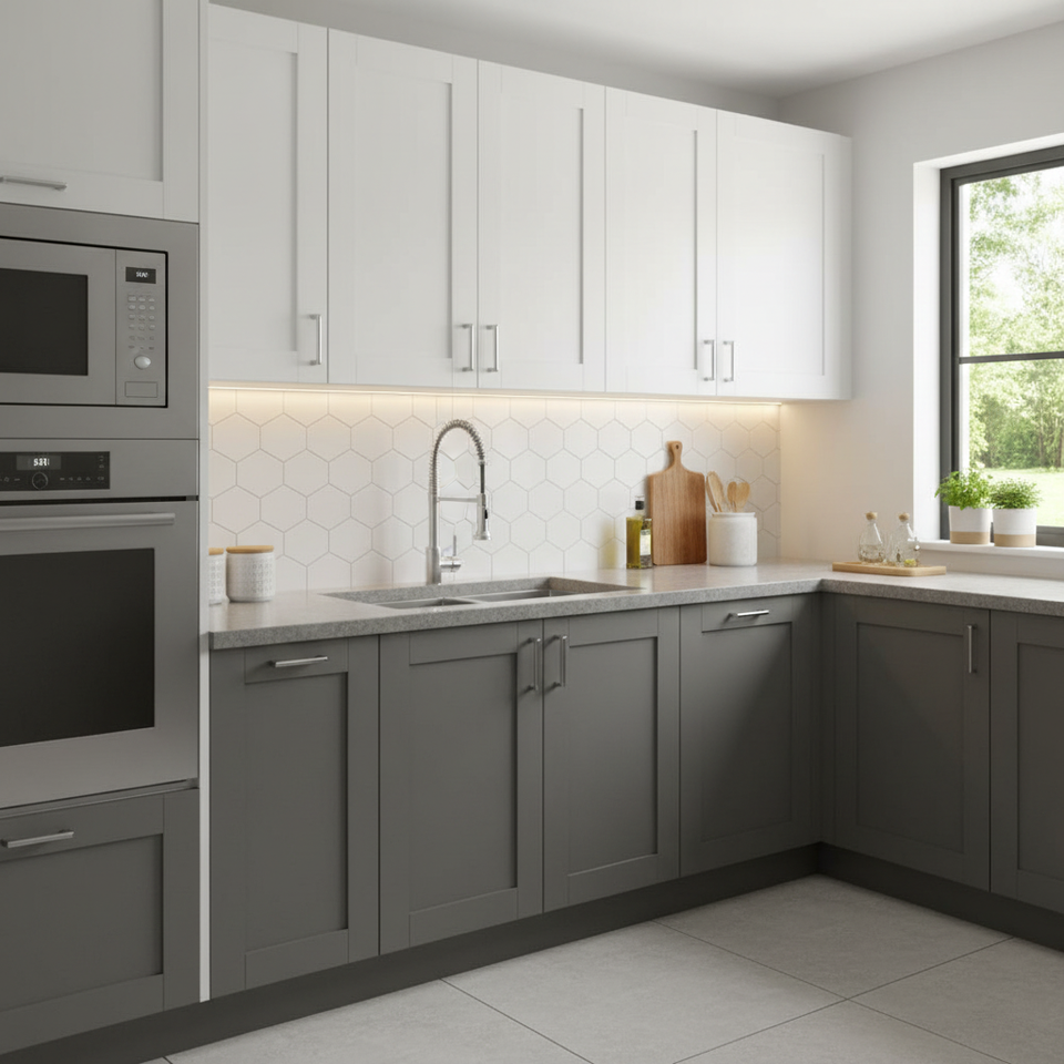 Mobile da Cucina Sunique SW-W3012, Anta in MDF Moderna, Stile Shaker Bianco