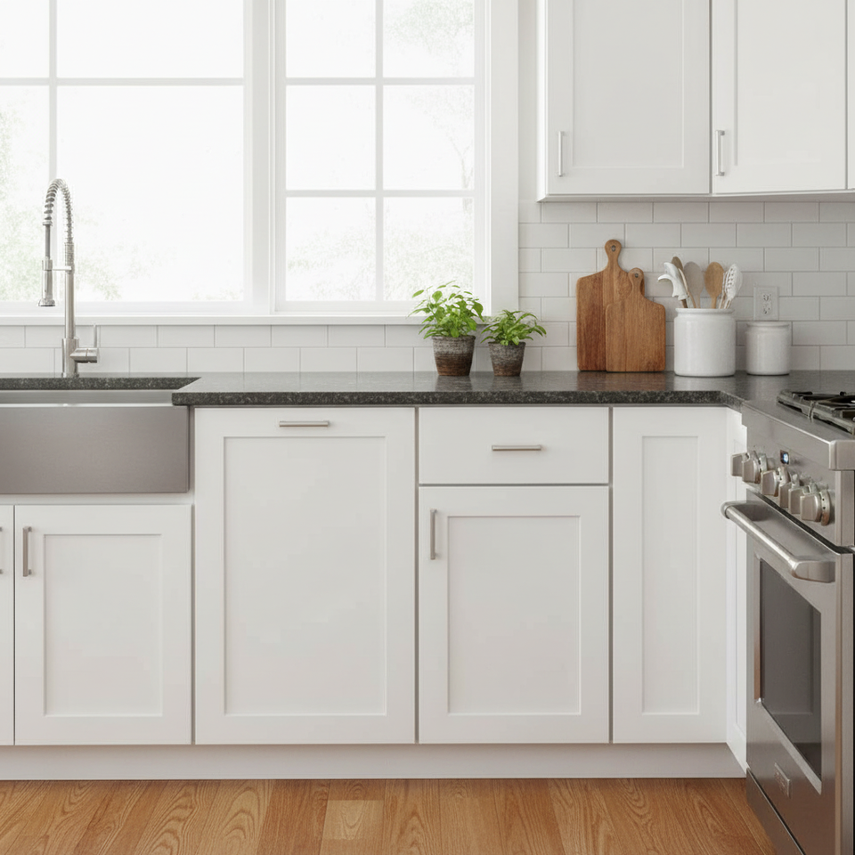 Sunique Sydney White Shaker Base Cabinet 24 In Width 1 Drawer Kitchen Cabinet Traditional Style Lacquered Finish