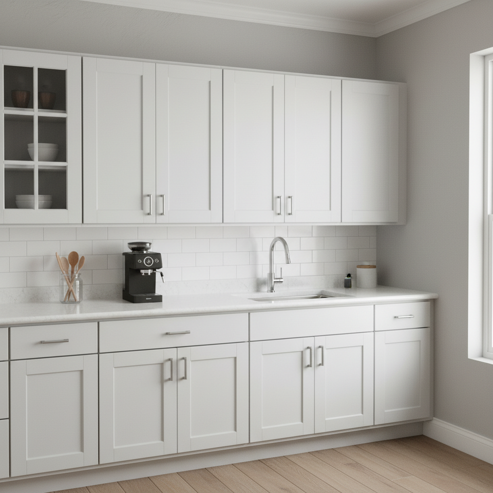 Sunique Sydney White Shaker Kitchen Cabinet 30x12x30 In 2 Doors 2 Shelves MDF Modern Style