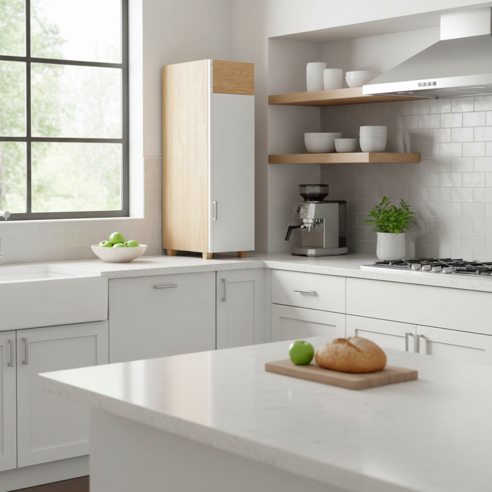 Sunique Sydney White Shaker Kitchen Cabinet Modern Freestanding 10in Above Kitchen Storage
