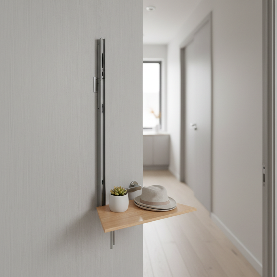 Mensola da parete Sunique in legno, a un livello, pieghevole, regolabile, minimalista, per riporre oggetti dietro le porte o le pareti