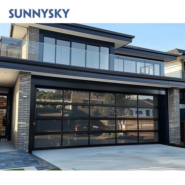 Sunnysky 8x8 Glass-garage-door Glass Front Garage Door Mirror 16' Clear 16x7 Commercial 9x8 Glass Garage Door with Moto