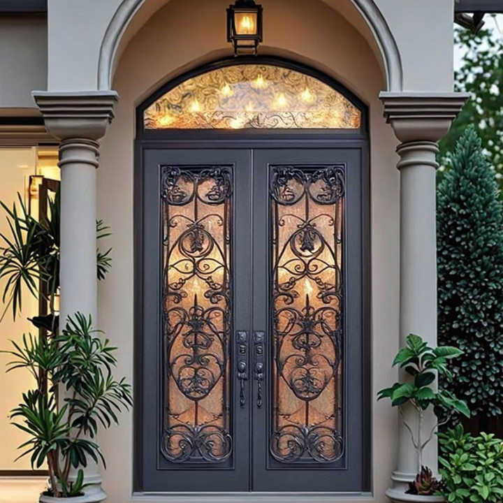 Sunnysky Porte Esterne in Ferro Battuto Decorative di Alta Qualità Personalizzate, Nuove Porte Moderne in Vetro e Ferro per Case e Ville