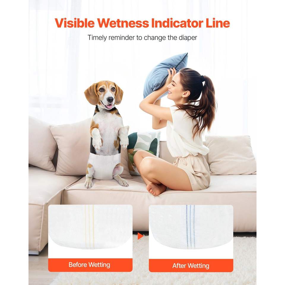 Pannolini Super Assorbenti Usa e Getta per Cani Femmine, Impermeabili a 360 Gradi con Indicatore di Umidità