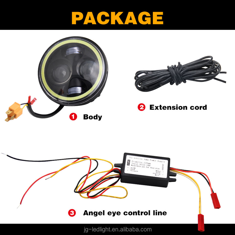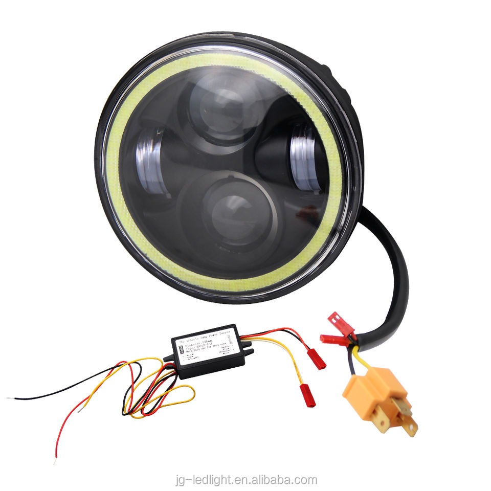 Super Bright Waterproof IP68 Angel Eyes Halo Light Auto 5.75inch Round Led Headlight 12V 24V