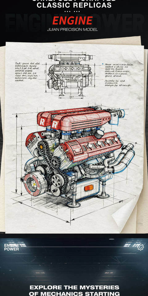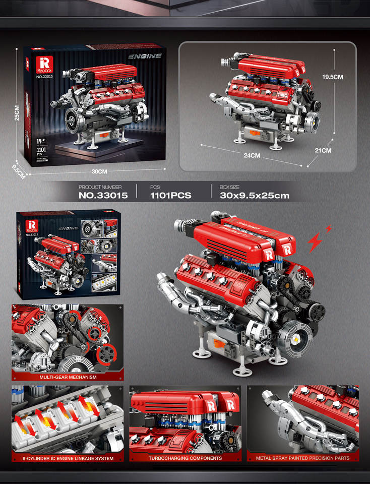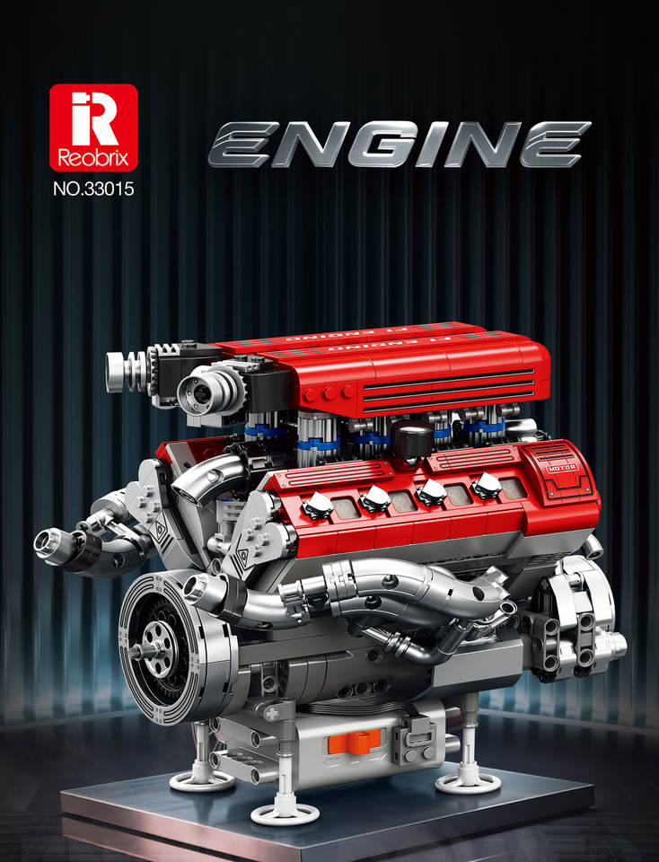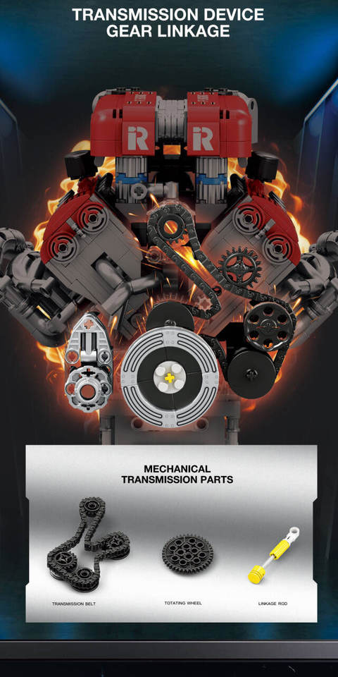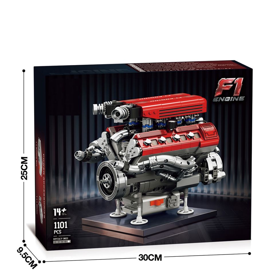 Modello di Motore a Turbina V8 F1 per Auto Sportiva, Gruppo Meccanico, Blocchi di Costruzione con Motore e Supporto per Batteria