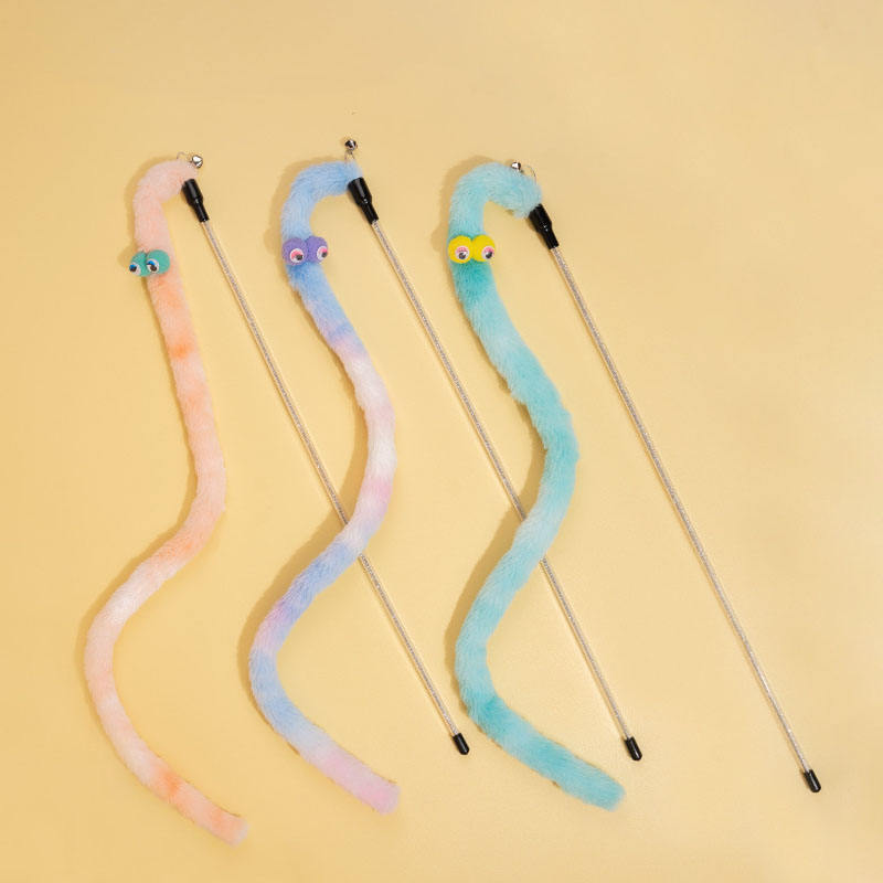 Gioco per Gatti a Forma di Bruco Super Carino, Bacchetta Teaser con Occhioni Grandi in PVC e Metallo, Resistente ai Morsi con Peluche e Campanello, Giocattoli Antigraffio Vendita all'Ingrosso dalla Fabbrica