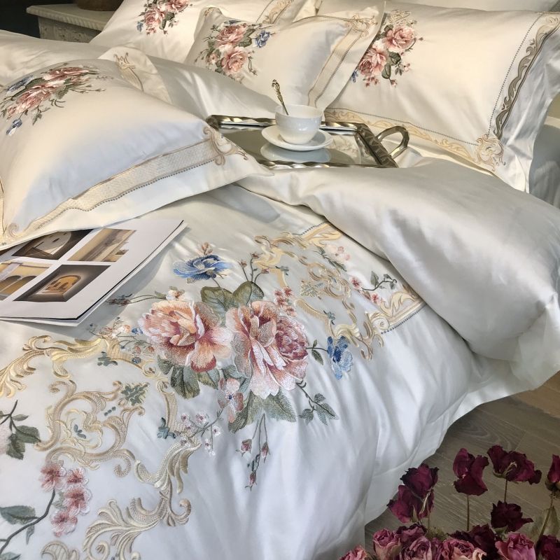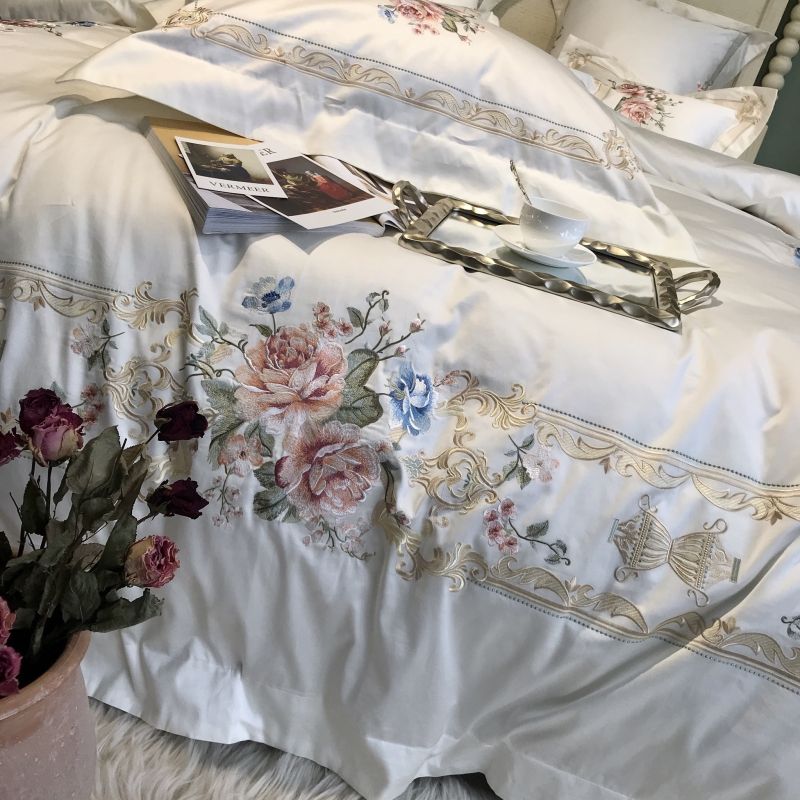 Set Biancheria da Letto Super King Size Personalizzato con Lenzuolo con Angoli, Lussuoso Copripiumino con Ricamo in Pregiato Cotone Egiziano Bianco