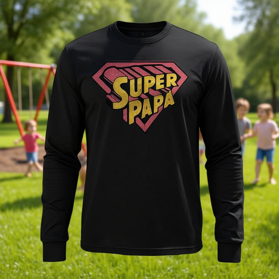 T-shirt a maniche lunghe con emblema Super Papa Hero Shield